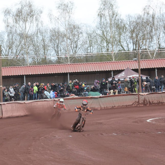Die heimlichen Helden von Neuenknick sitzen aufm Trecker. Denn ein Regenschauer zeitgleich mit Beginn des Sechserspeedwaynachmittags in Westfalen macht die rote Bahn zu einem Schlammbad. Weil der Regen im ersten Block beharrlich fällt, muss sogar eine Pause eingelegt werden, um den Schauer abziehen zu lassen.
